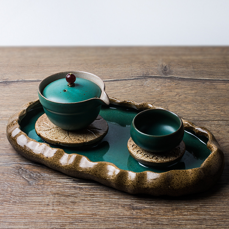 Handmade coarse pottery pot bearing creative ceramic small tea tray pot bearing tea care water storage dry bubble pan tea sea small number korn tea furniture