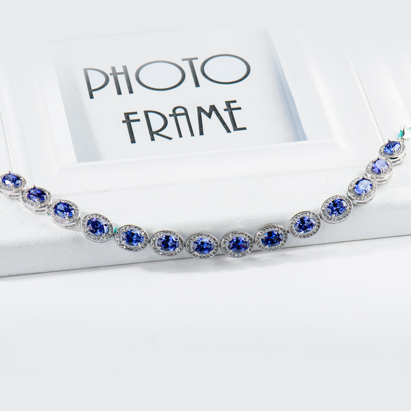 Sapphire Handmade Woman s925 Pure Silver New Atmosphere 100 Hitch Inlaid Synthetic Blue Zircons Stone Tansanite Crystal Hand Refining