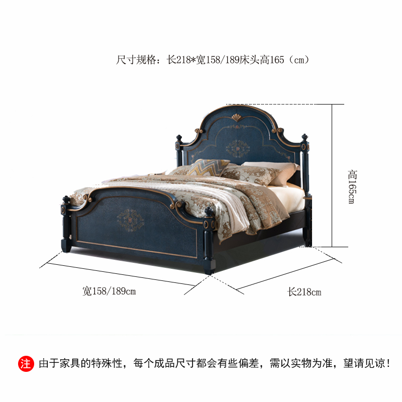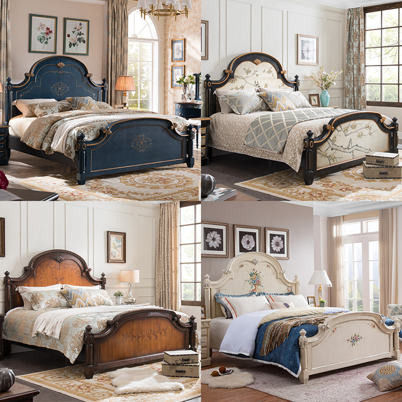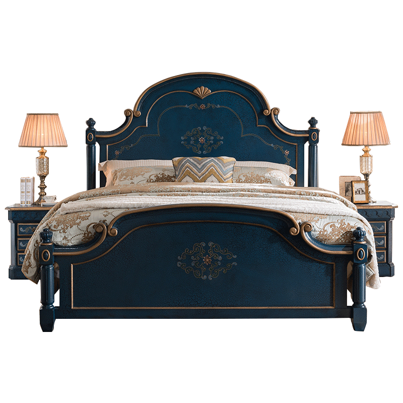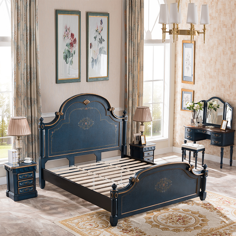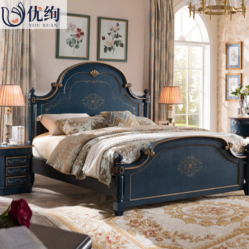 Painting double bed American rural solid wood bedroom blue Mediterranean style bedroom furniture 1 8 m European style 1 5 m