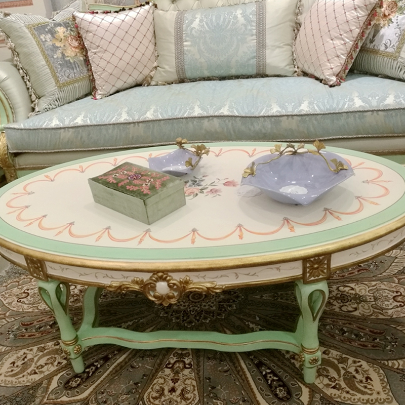Julianne luxury French European green hand painted 1 38 oval full solid wood coffee table corner several villa sets