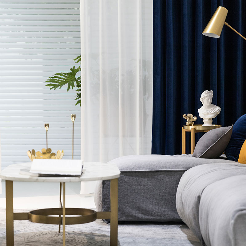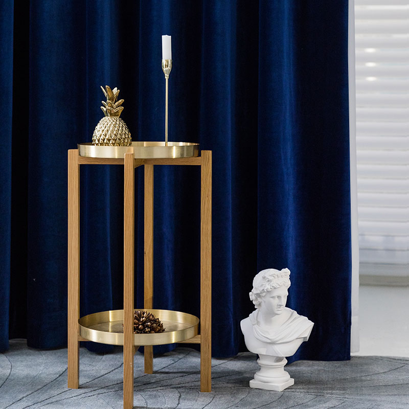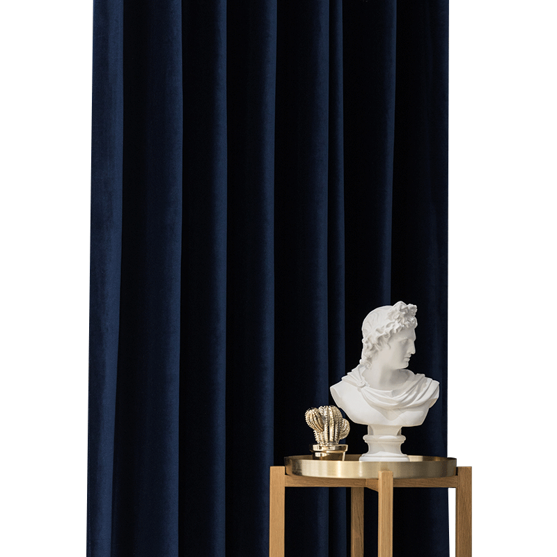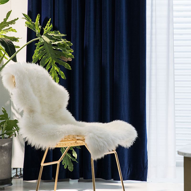 Light luxury royal blue flannel fabric custom American minimalist retro bedroom living room dark blue velvet curtains