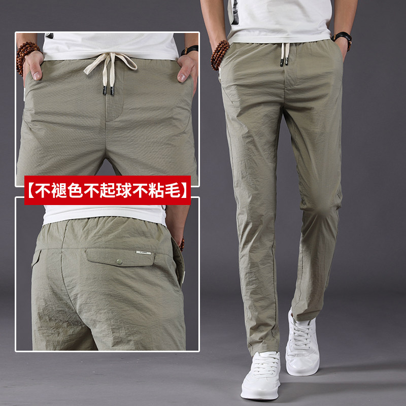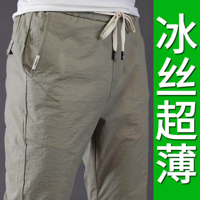 Ice silk thin section summer loose tight straight tube sports trend long pants men's casual pants spring summer summer pants summer clothes