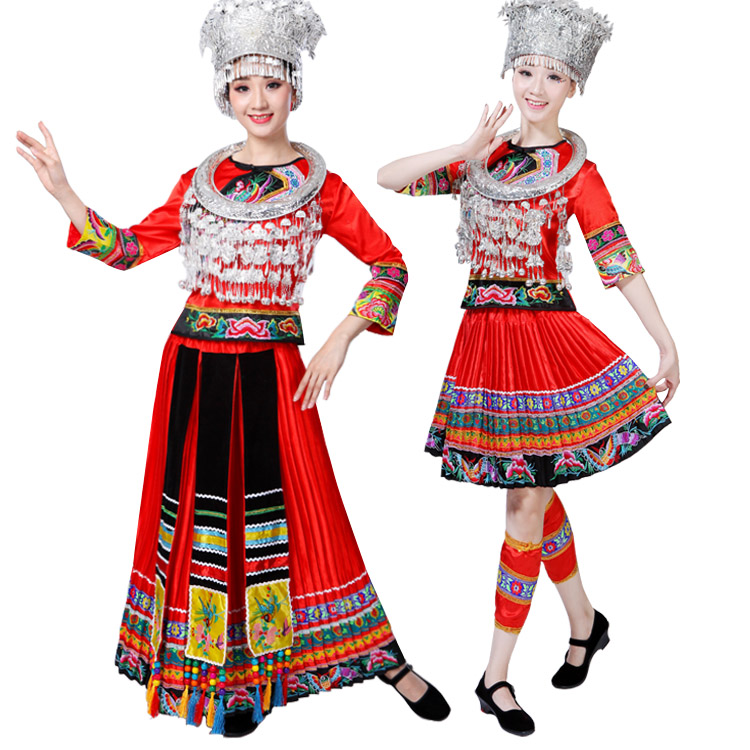 New Miao ethnic costumes Ethnic embroidery for the women Yi Tujia Family dance suit with long version of plexeography dress dance