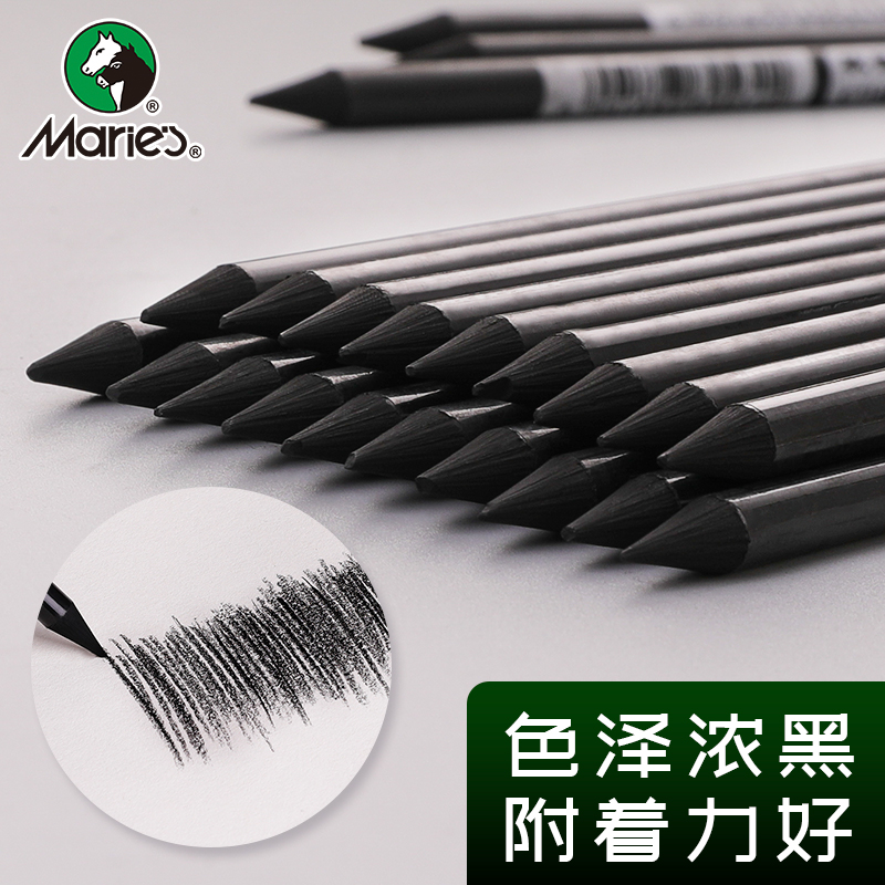 Marley full carbon charcoal drawing pencil Sketch sketch charcoal pen Soft full carbon pen Soft carbon Full carbon art student special drawing pencil 6 pcs 12 pcs 24 pcs