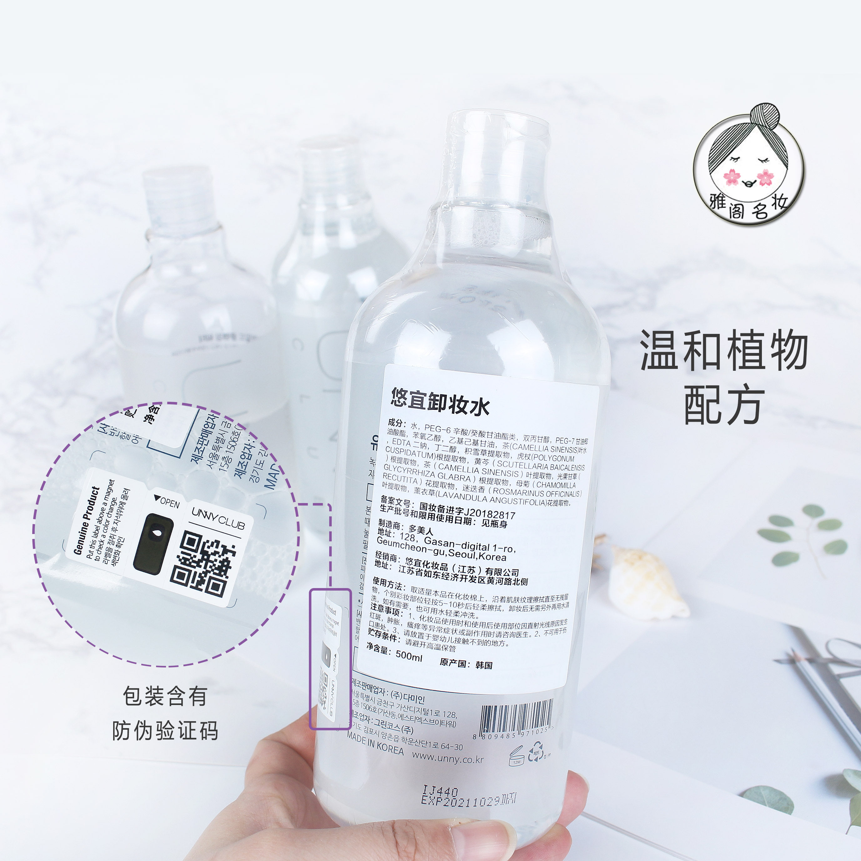 South Korea's UNNY Youyi Makeup Remover Women's Face Eyes and Lips Gentle Deep Cleansing Makeup Remover Non-irritating Skin Care