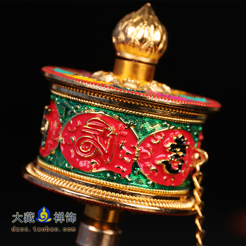 Tibetan Buddhist Hall Supplies Painted gilt six-character mantra eight auspicious hand-turned prayer wheel trumpet