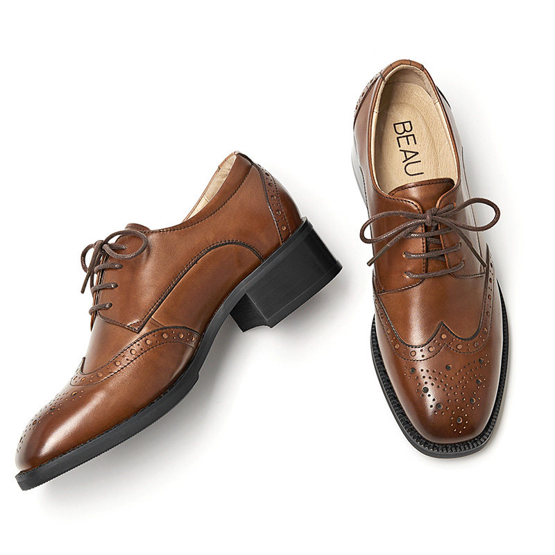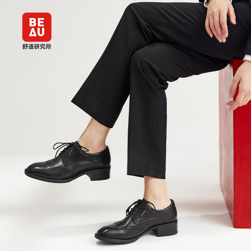 BEAU Small Shoes Englishmen Fang Head Brock Shoes Cosmetic Oxford Shoes Deep Mouth Single Shoes