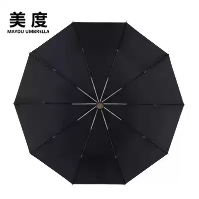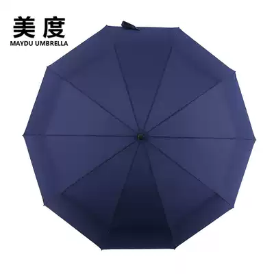 Meidu 10-bone aluminum alloy business umbrella Three-fold manual windproof parasol ultra-heavy rain umbrella black blue M3512