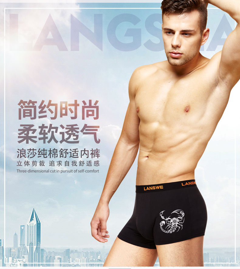 Romansa 4 boxed pure cotton men's underwear Breathable Business Sports Pure Color Four-corner Pants Summer New Four-corner Pants