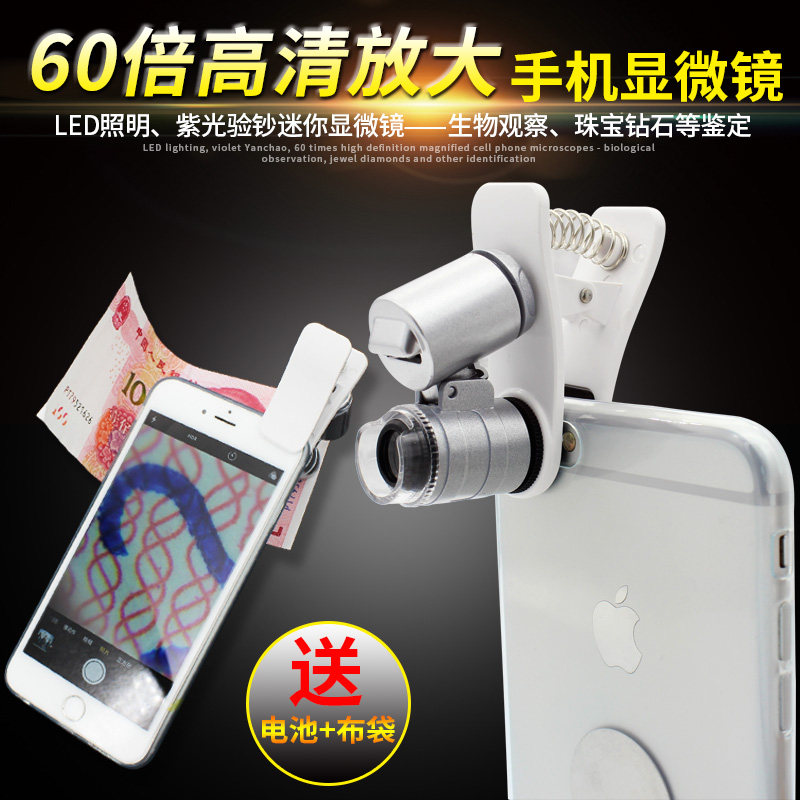 60 times mini with light high-definition mobile phone microscope portable photo antique jewelry banknote inspection and identification stamp magnifying glass