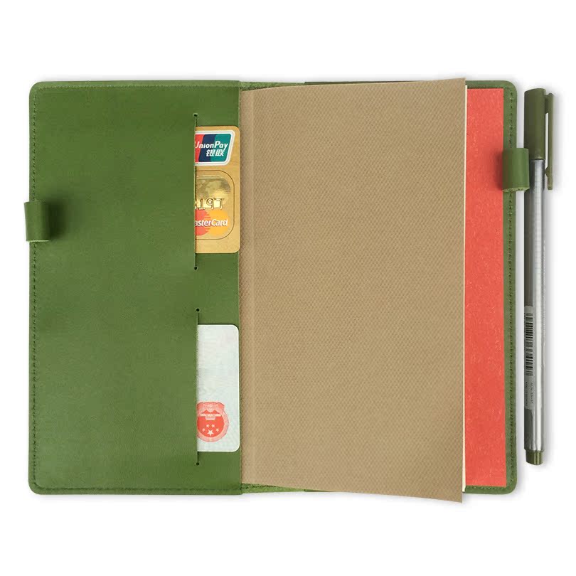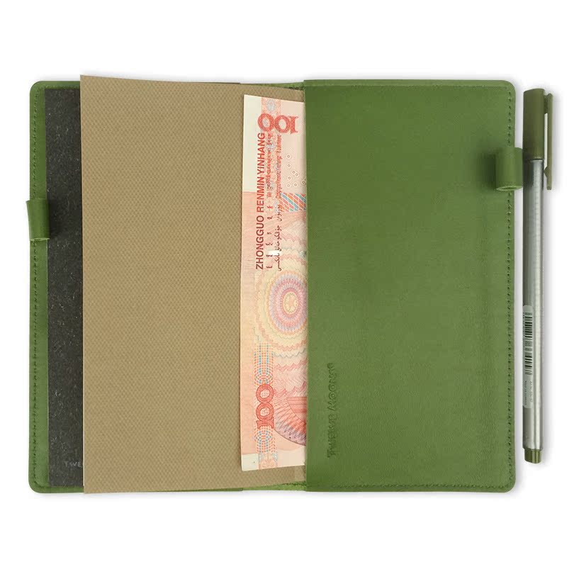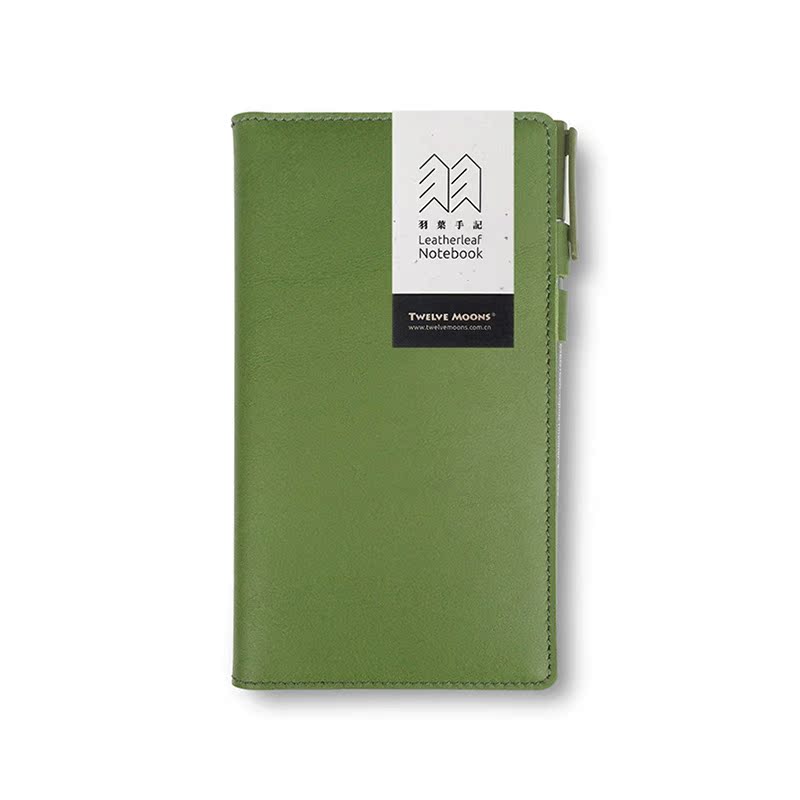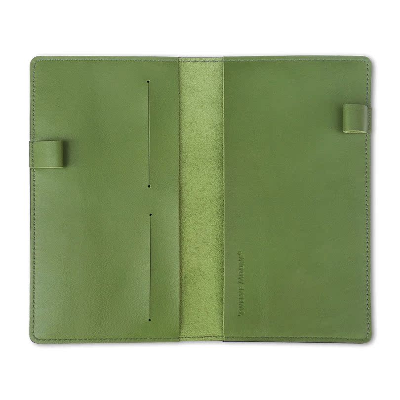 TWELVE MOONS SMALL PLUMS HAND REMEMBER GENUINE LEATHER JACKET PASSPORT JACKET NOTEBOOK JACKET-GREEN