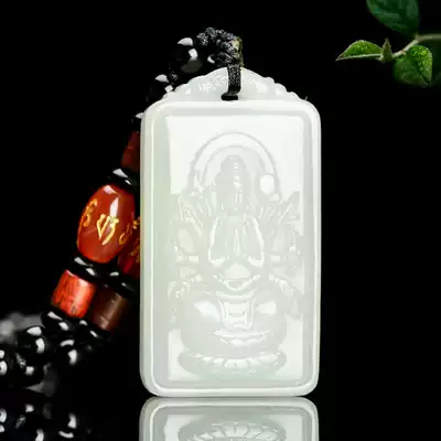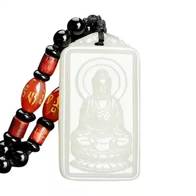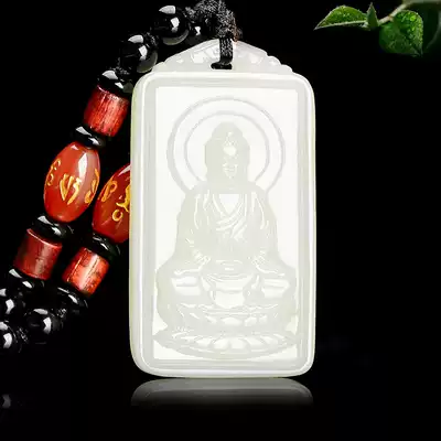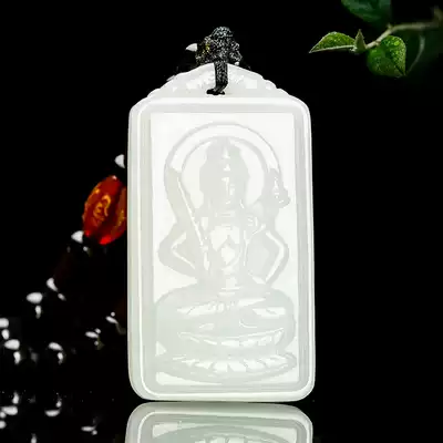 Hetian Jade White Jade Natal Buddha pendant Men and women zodiac patron saint necklace Male Guanyin Bodhisattva pendant Jade pendant
