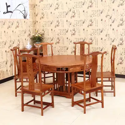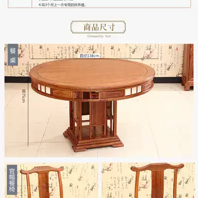 Mahogany Ming style round dining table Rosewood plain surface Ming and Qing classical antique rosewood Chinese solid wood dining table and chair combination