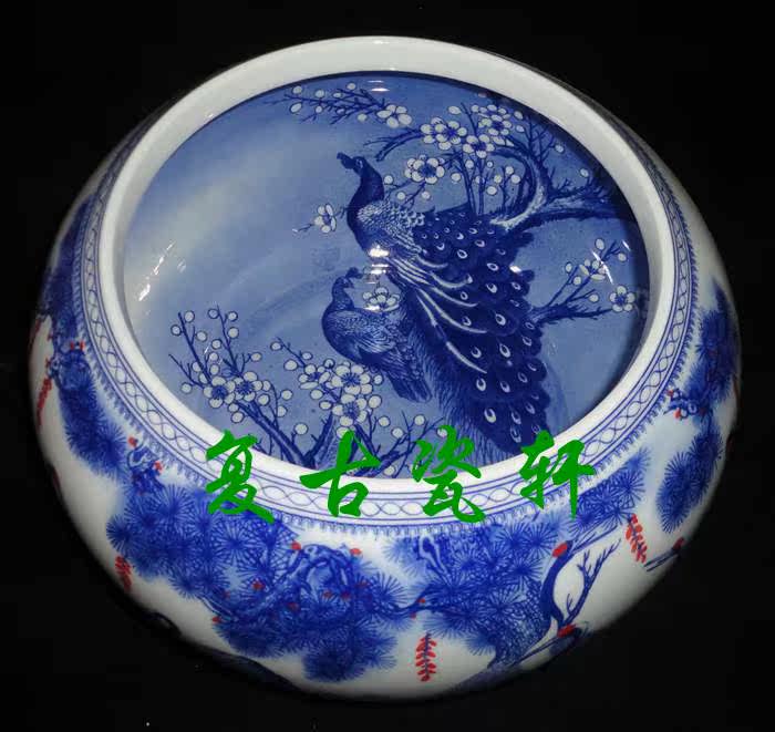 Jingdezhen Factory Goods Porcelain Green Blossom Glazed inside and outside Painter Pine Crane Extended Year Washed and washed tea wash and pen wash
