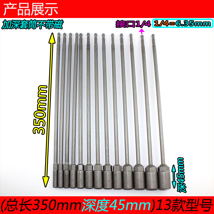 The front field 350mm batch drill lengthening inner hexagonal sleeve batch expansion screw sleeve deep hole 45mm