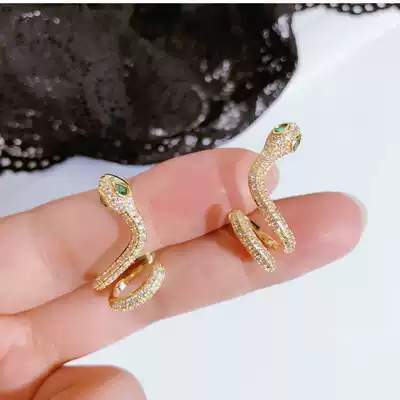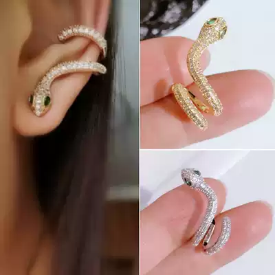 European and American new products inlaid zircon personality snake ear clip ear clip s925 silver needle ear needle fashion trend temperament earrings