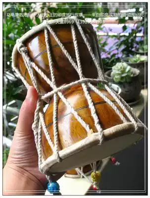 VEENA Indian musical instrument] damaru solid wood brass sheepskin double-sided Shiva drum Om namah shivay