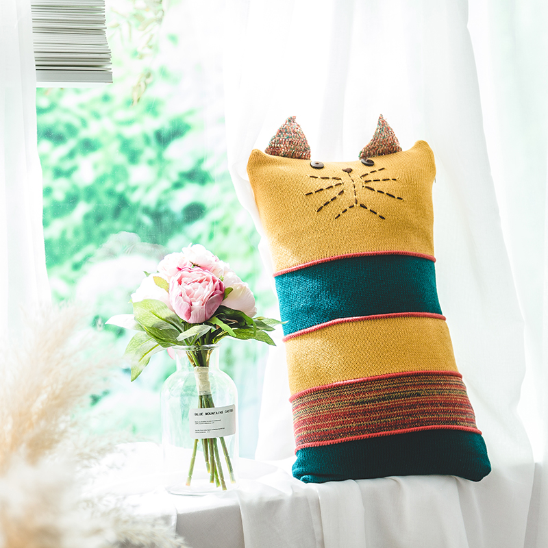 INS Nordic Wind cute kitty Rectangular Cushions Small Holding Pillow Cover Back Cushion-Taobao-Taobao