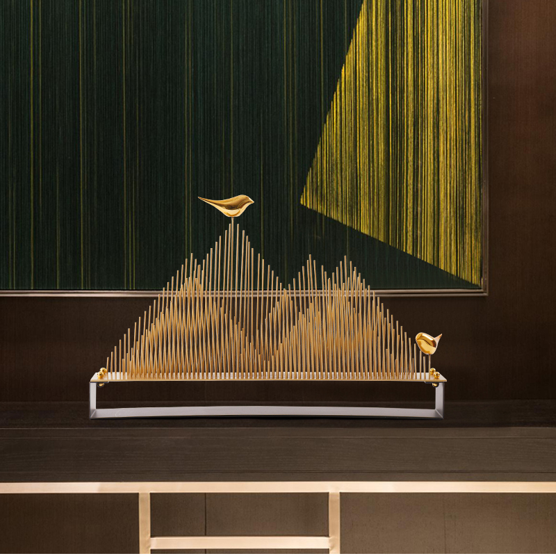 Modern New Chinese Zen Metal Fake Hill Bird Ornaments Hotel Clubhouse Model House Entrance Gate Soft Decor