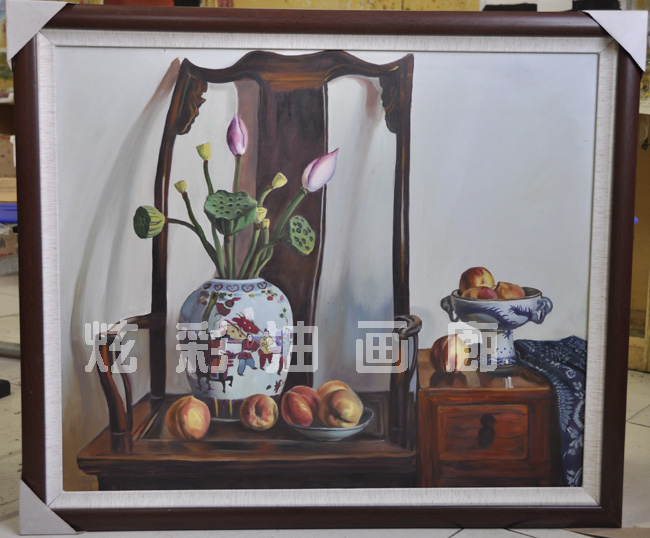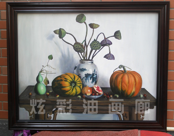 Oil painting pure hand-painted Chinese tiger head shoes pumpkin pomegranate lotus cloth peach rice ears