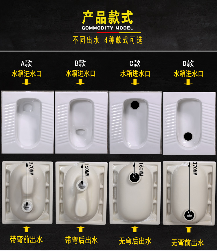 A behind-the-forward front drain with storage bend energy saving tank B behind back drainage storage bend energy saving tank C behind back drainage without storage bending energy saving tank D backward drainage without storage bending and energy saving tank