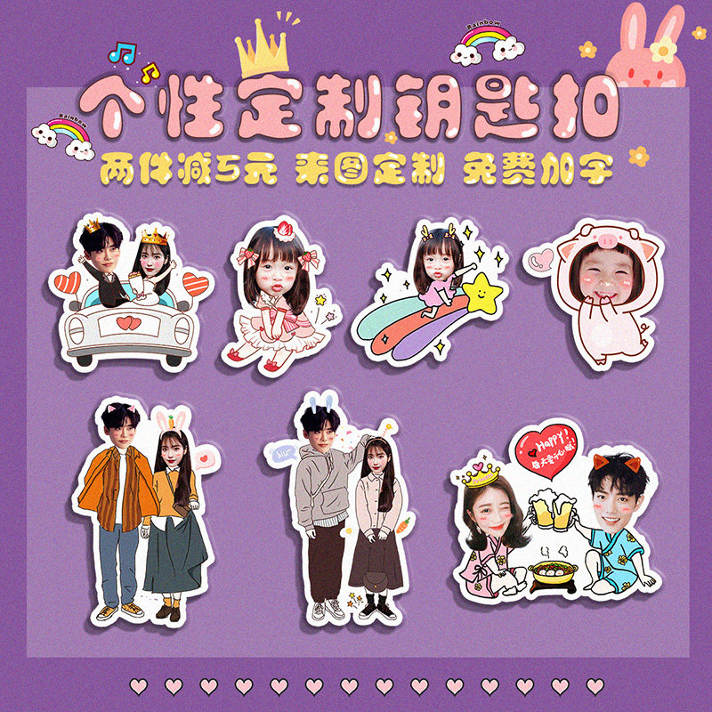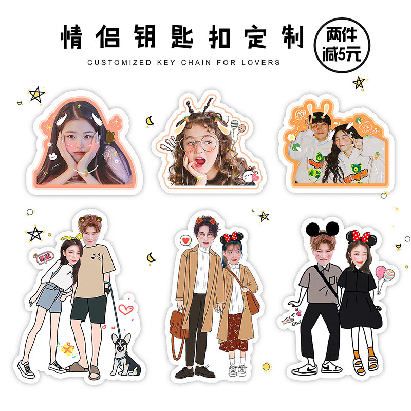 Net red couple keychain diy custom creative cartoon photos custom cute car chain pendant acrylic woman