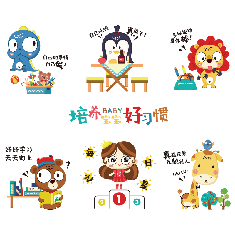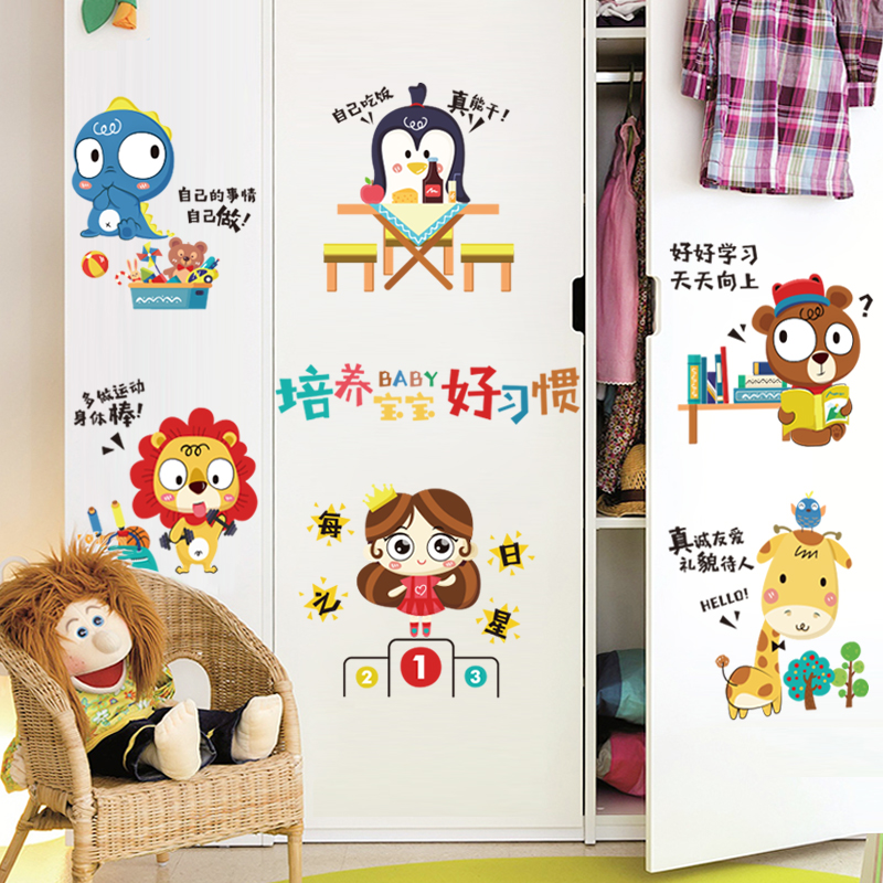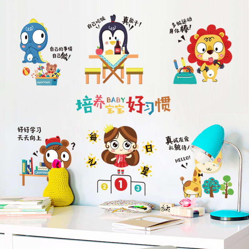 Cartoon Baby Early teaching sticker Children's room Bedroom bedroom Decorative Wall Sticker Painting Kindergarten Classroom Good Habit Signs Placement