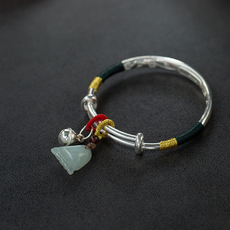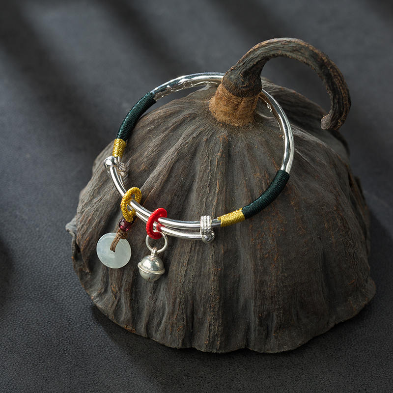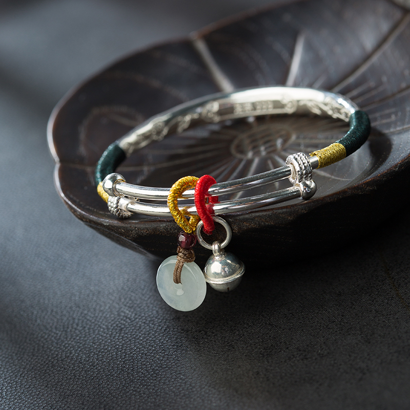 Contentment Changle 999 Pure Silver Emerald Little Feet Bell Safety Buckle Children's Silver Bracelet Baby Children's Bracelet