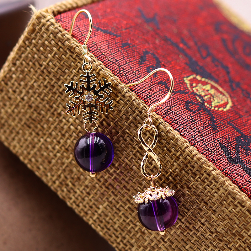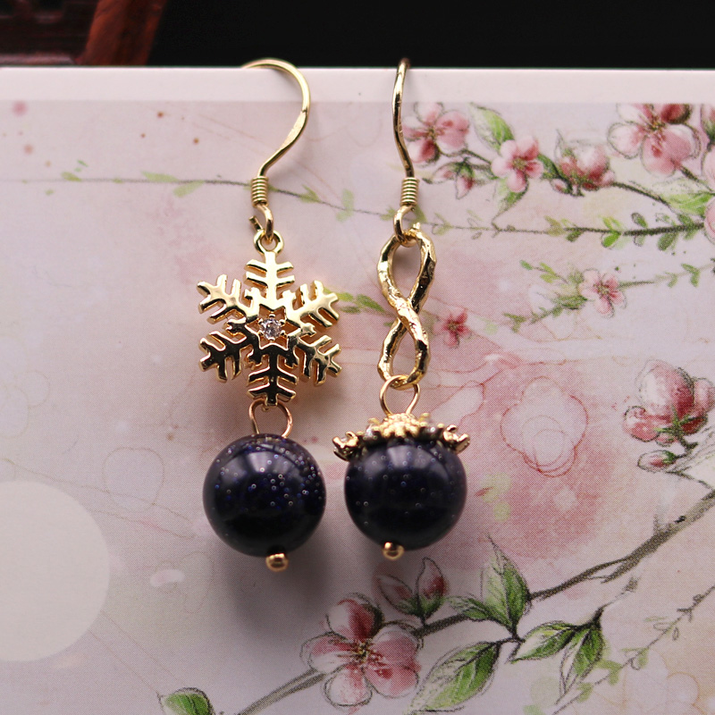 Minimalist asymmetrical ear pendant amethyst blue sandstone earrings small snowflake earrings for work casual 100 hitch