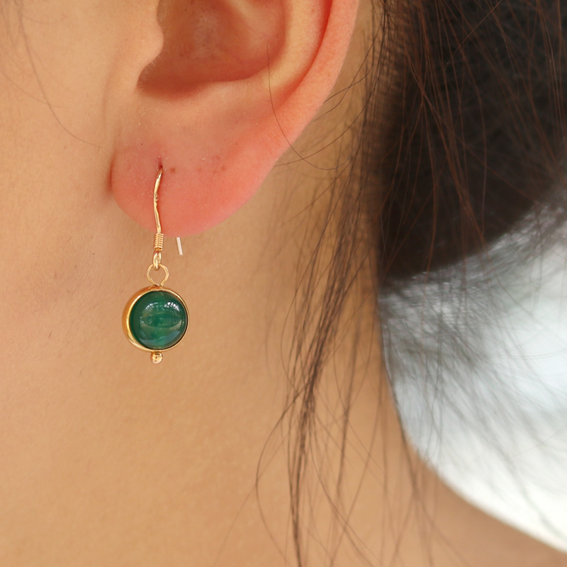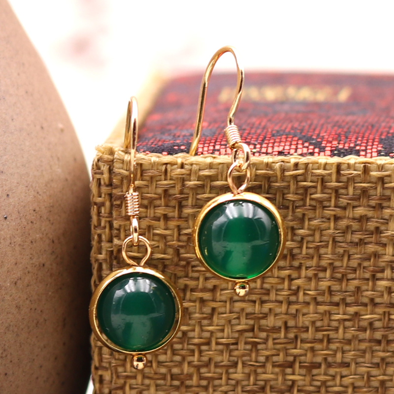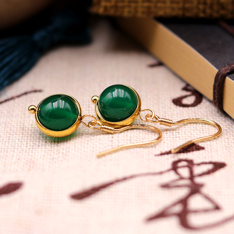 Extremely simple green agate earrings 925 silver ear hook hypoallergenic earrings Chinese style office worker life earrings earrings
