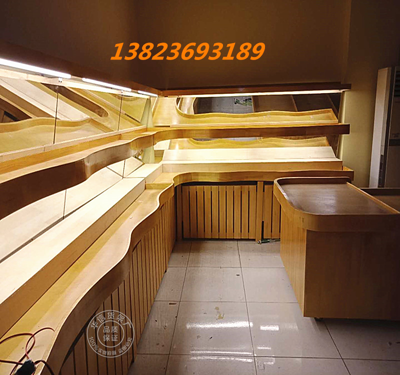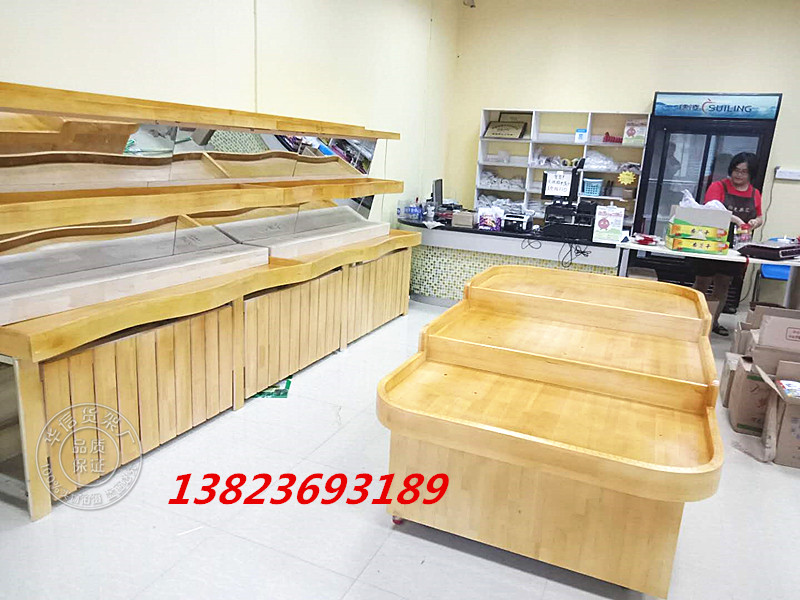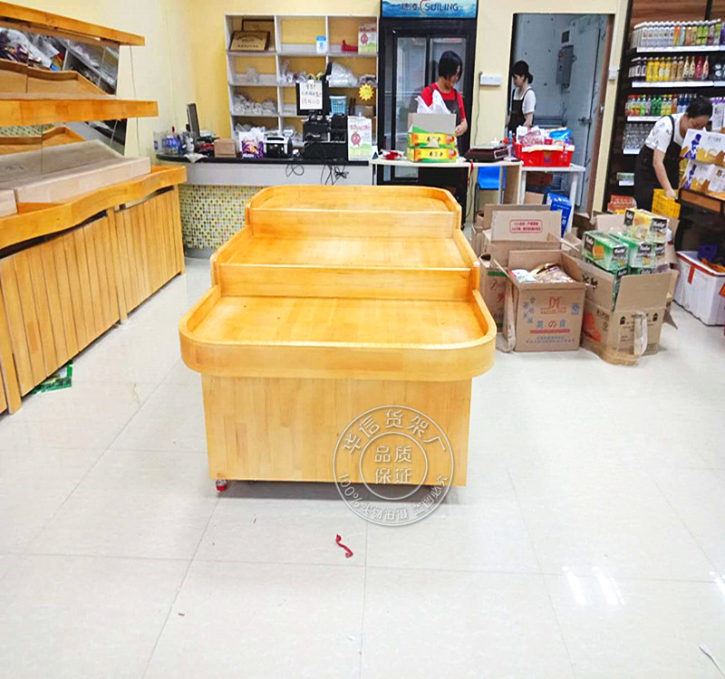 Shenzhen Baiguoyuan fruit shelf Wooden three-layer fruit shelf Supermarket solid wood fruit and vegetable rack Fruit shelf display rack