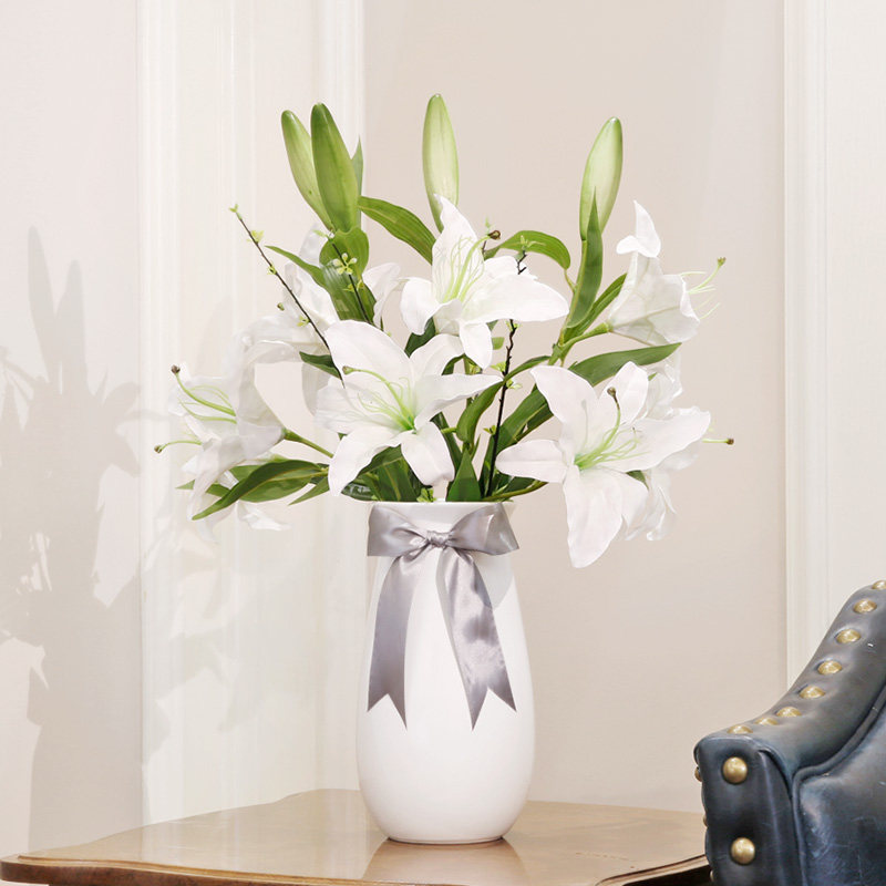 Emulated lily flower bouquet Flowers Bouquet Living-room Home Residence Decoration Flower Flower Arrangement Table Floral Dancing Lan Embroidered Ball-Taobao