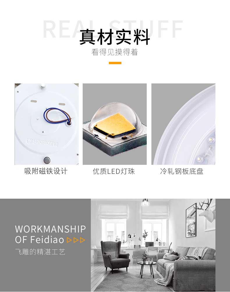 Feidiao LED retrofit lamp board round long strip ceiling lamp rectangular lamp strip replaces three-color wick patch energy-saving