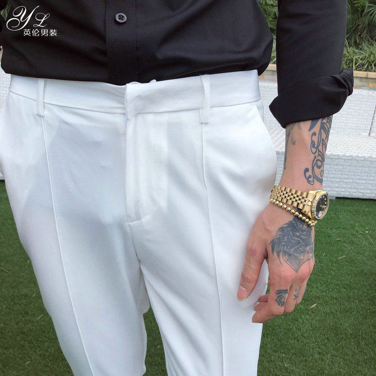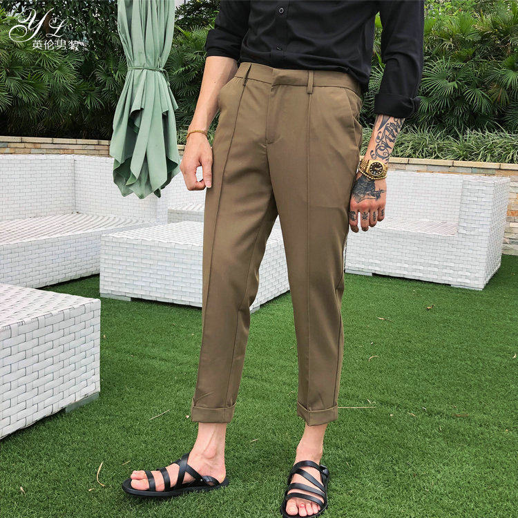 South Korea DongDaemun men's summer casual small straight trousers slim nine points casual pants Korean version of Suisong tight pants