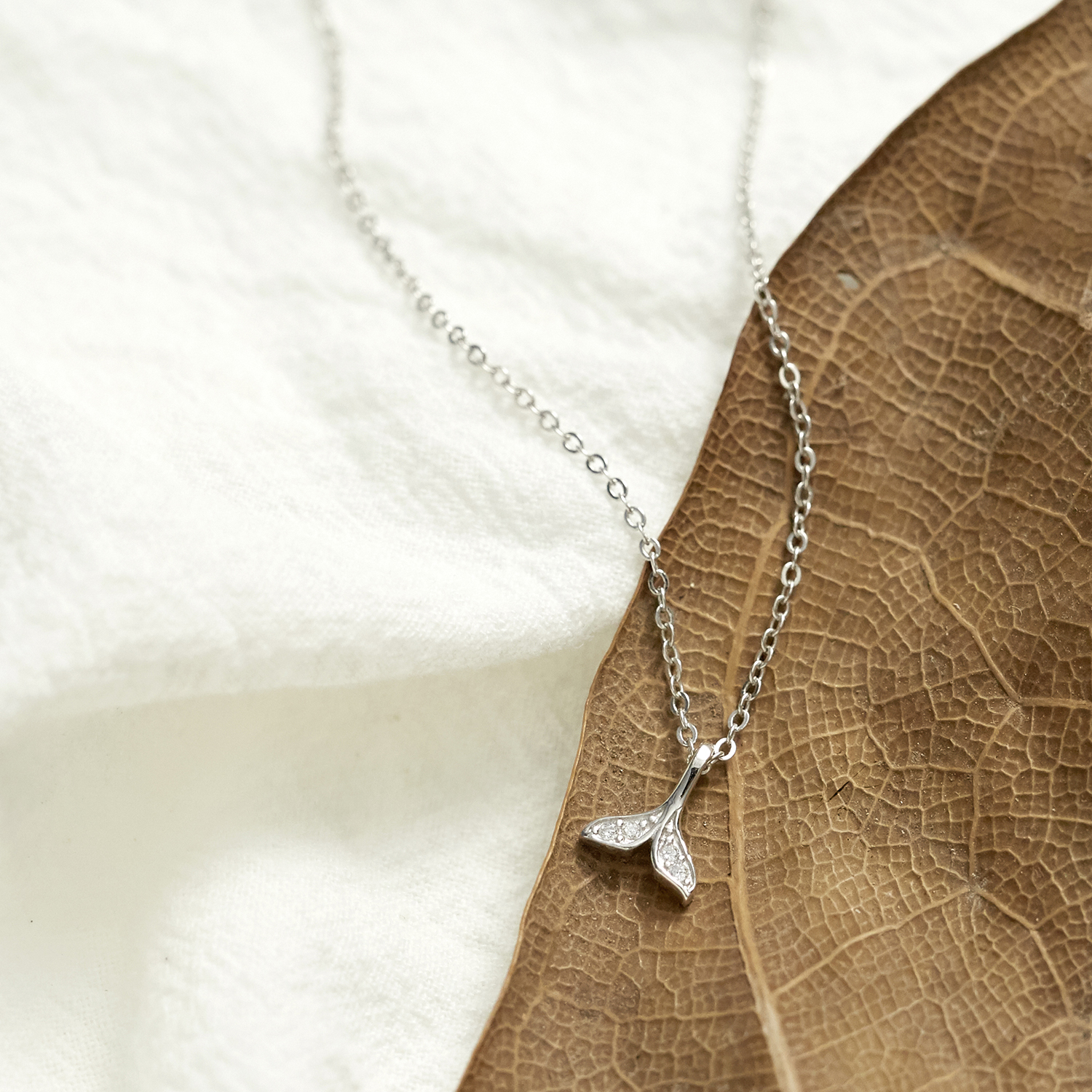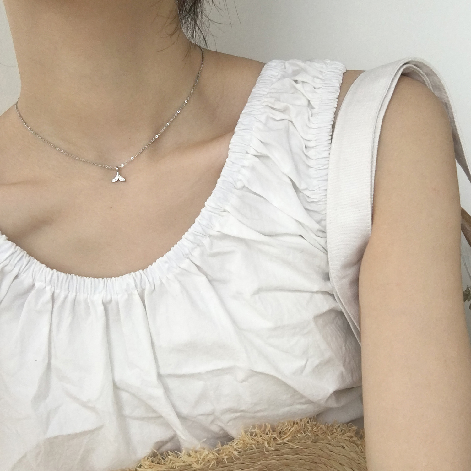 Human fishtail s925 pure silver necklace female temperament chic brief about slightly inlaid zircon short gold plated collarbone chain not to fall color