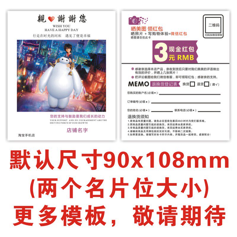 After-sales cashback service card WeChat thank you letter Five-point praise price card printing five-star sun map red envelope card customization