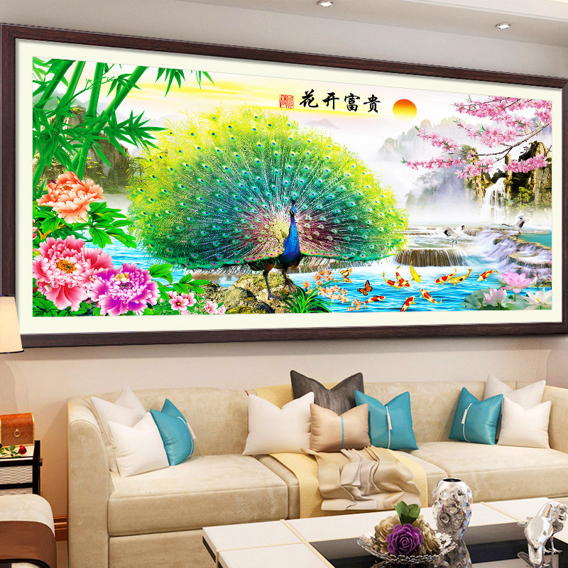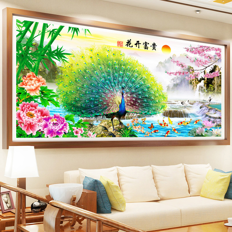 Print cross stitch line embroidery 2020 new living room landscape painting rich flowers their own hand-embroidered peacock