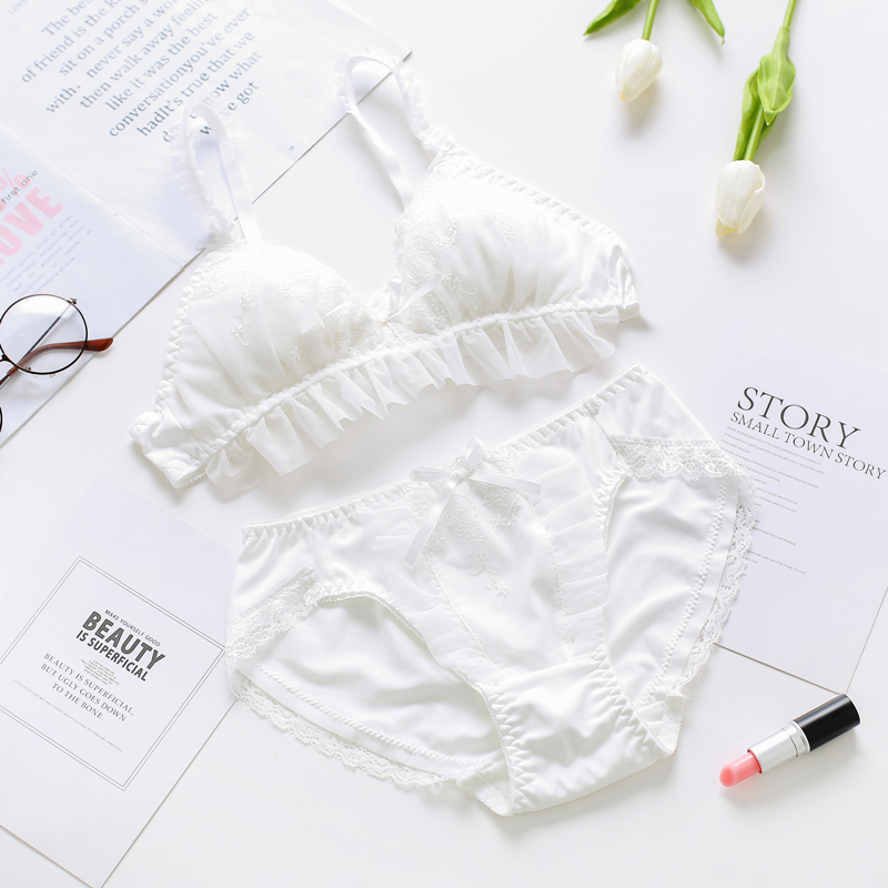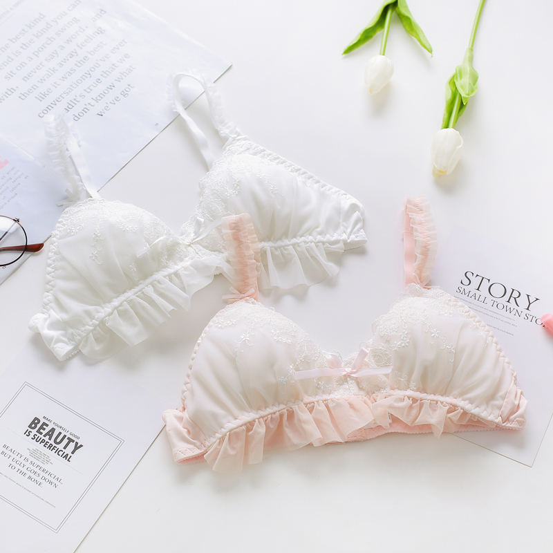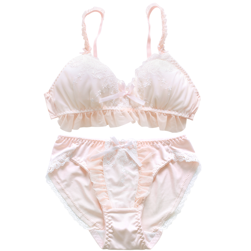 Cute Triangle Cup Lingerie Suit No Steel Ring Embroidered Girl Hearts Comfort Sleeping Cotton sweet and beautiful bra small breasts