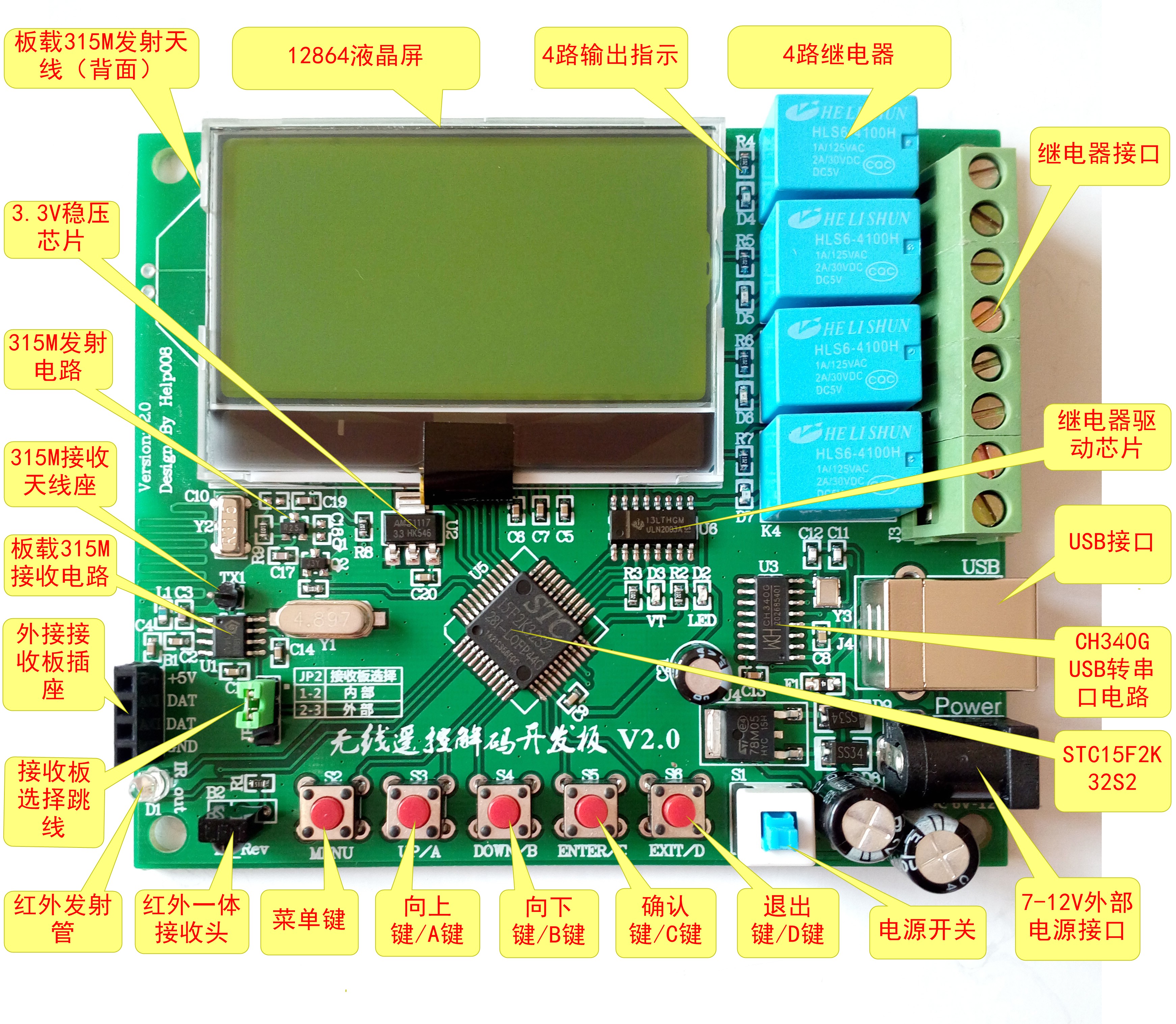 315433 Remote Control Development Board Decoding Development Board Learning Board 2262 1527 Smart Home Wireless