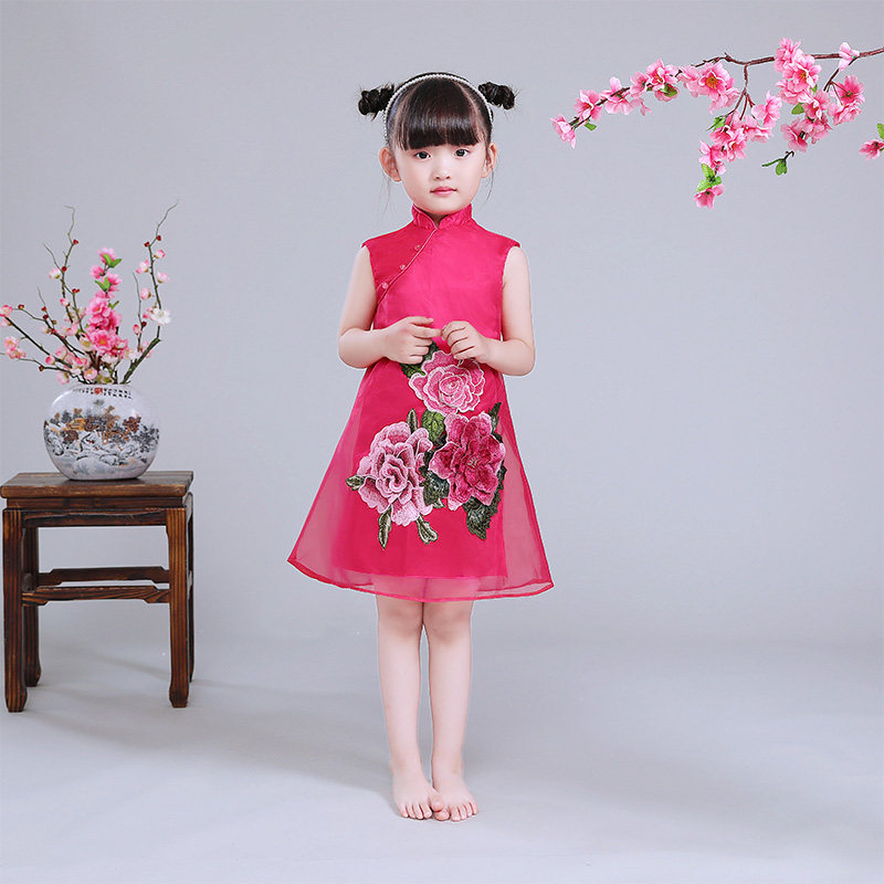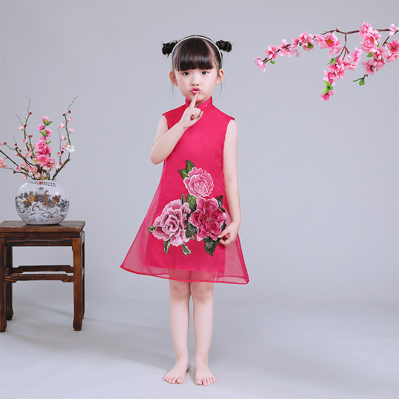 Children's Chinese wind dress summer cool air-air girl baby baby baby robe embroidered flower dress
