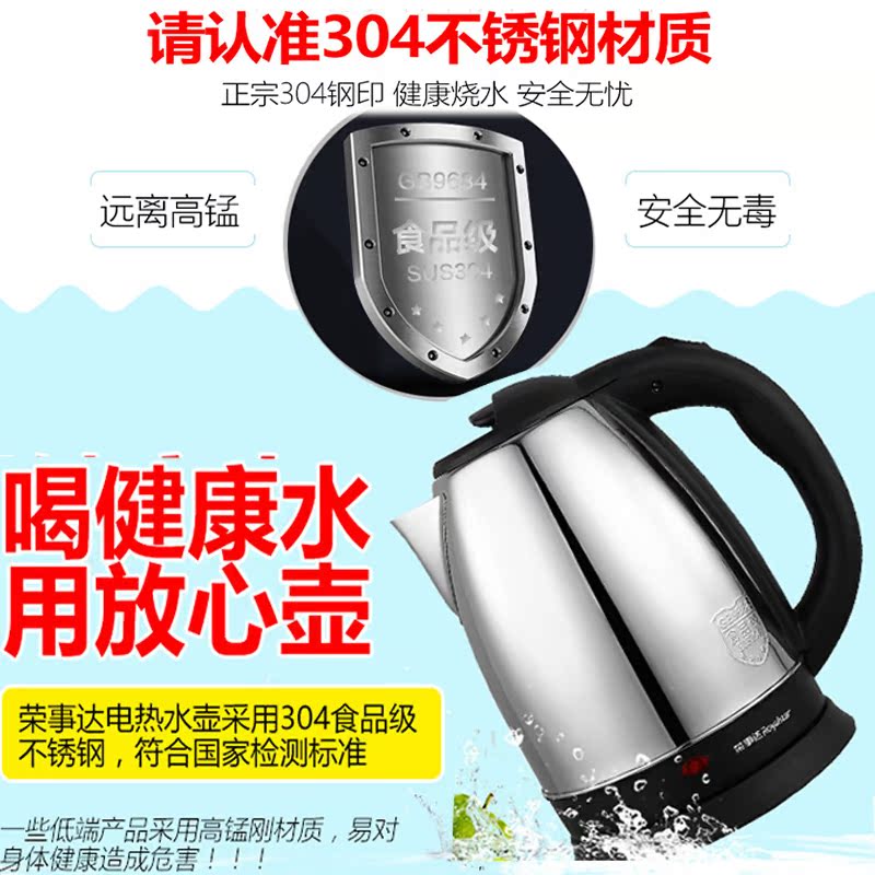 Rongshida electric kettle household automatic power-off anti-dry 304 stainless steel large-capacity kettle 1 8L