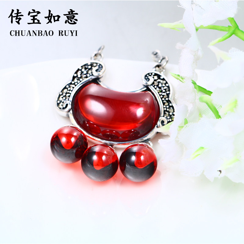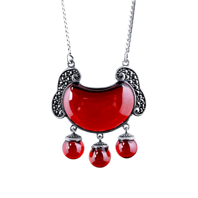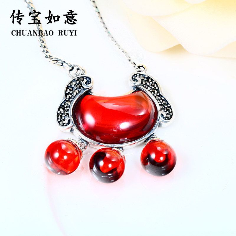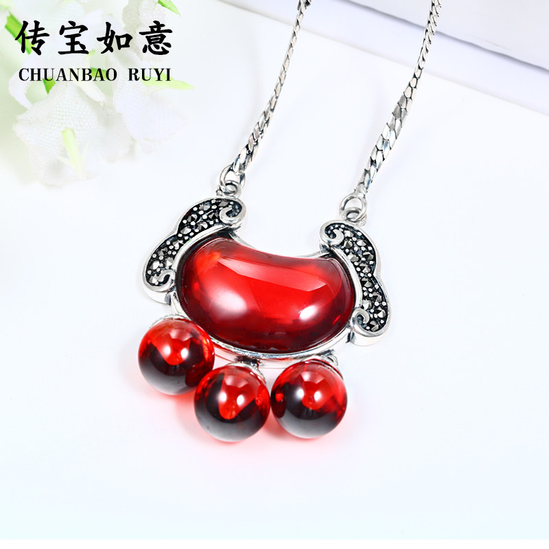 S925 Pure Silver Ruyi Lock Pendant Women's Retro National Wind Silver Lock Adult Flow Sunecklace Birthday Holiday Gift