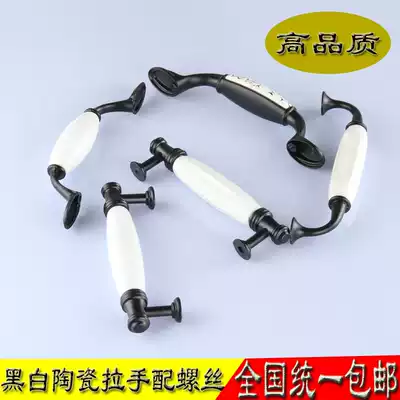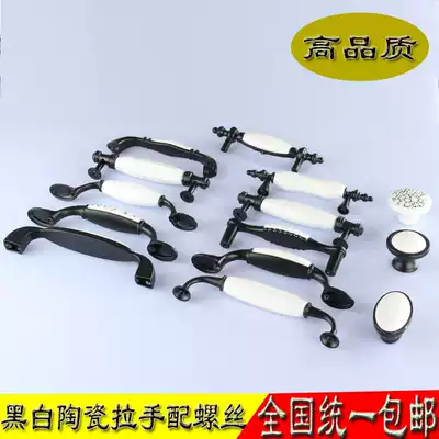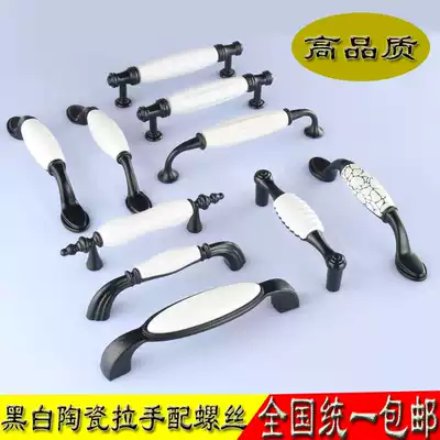Black ceramic handle European wardrobe handle simple black and white handle overall cabinet shoe cabinet ceramic handle cabinet door handle