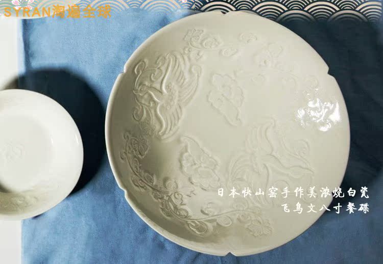Japan Imports Kaizan Express Mountain Kilns Beauty Thick Burning Ceramic Saucer 8 Inch High Pan Medium Dish White Porcelain Flying Bird
