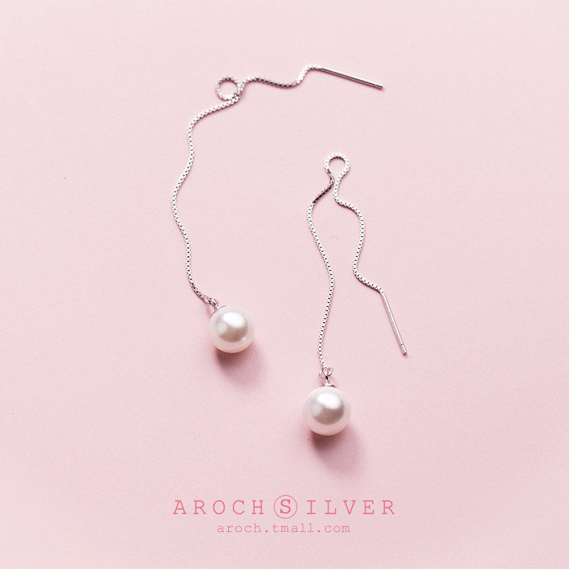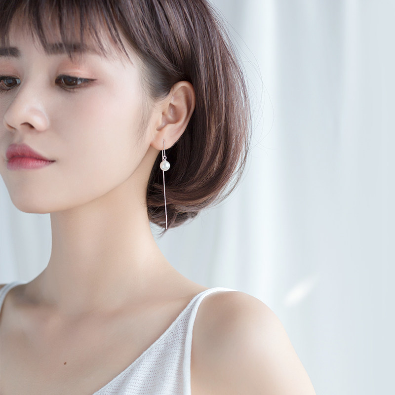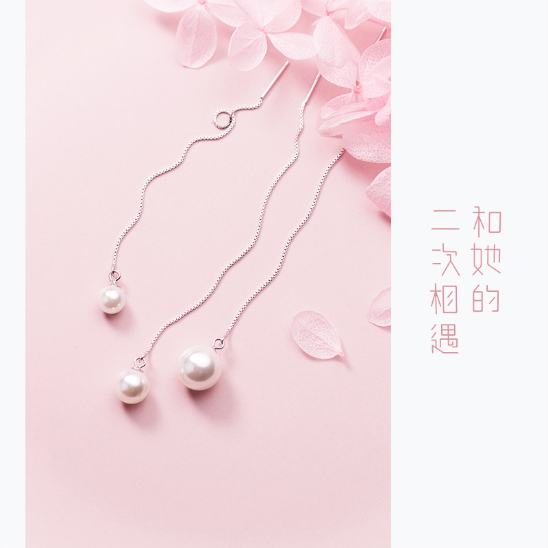 Love Loch s925 Silver Ear Cord Korean Version Sweet Meme Beads Synthetic Pearl Earline Temperament Long Version Ear Pendant Ornament Woman