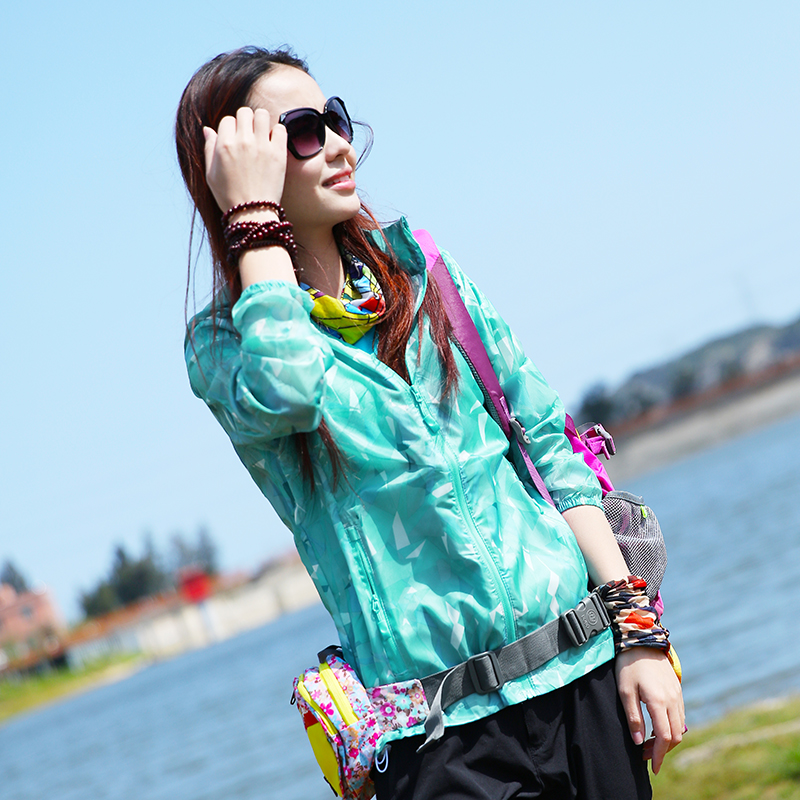 Outdoor camouflage parquet Skin Coat Women Sunscreen Resistant UV Speed Dry Breathable Ultra Light Abrasion Resistant Sport Winewear Summer