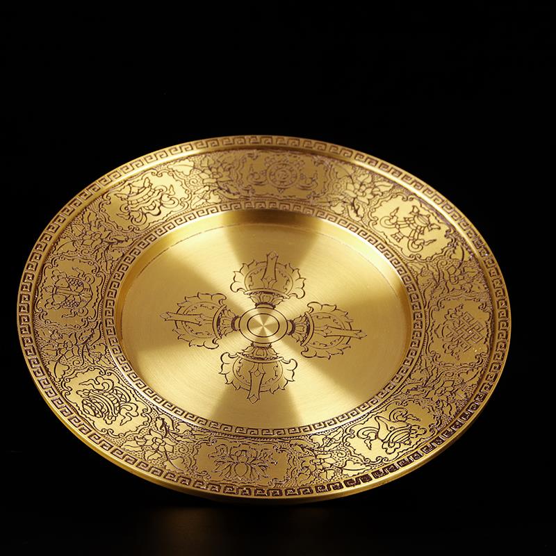 Tibetan Buddha Apparatus Seiko Pure Bronze Carved Flower for Buddha Eight Auspicious Repair Mandala Pan GemStone Tray 17cm