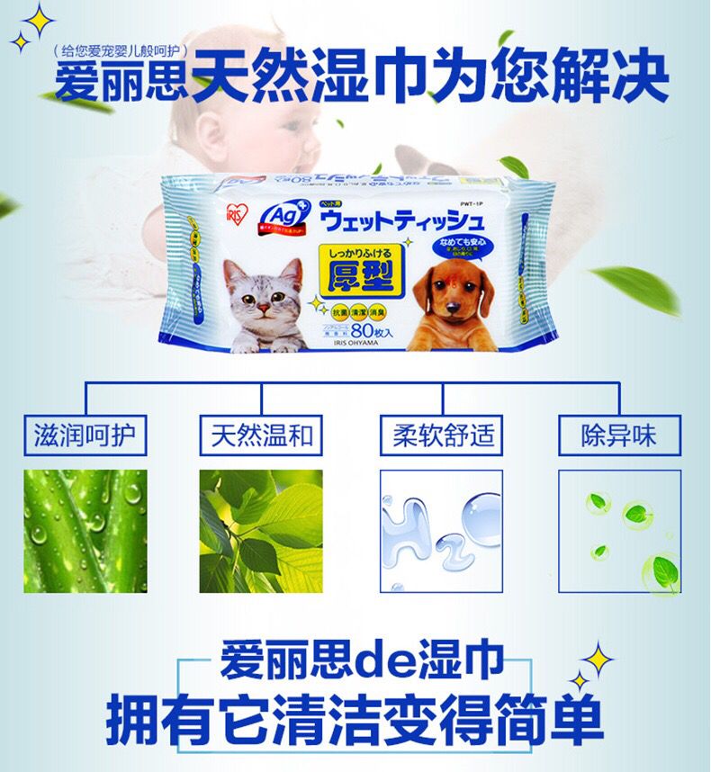 Japan IRIS pet wet towels kitty pooch clean eyes ears Ears Deodorize to tear down 80 slices