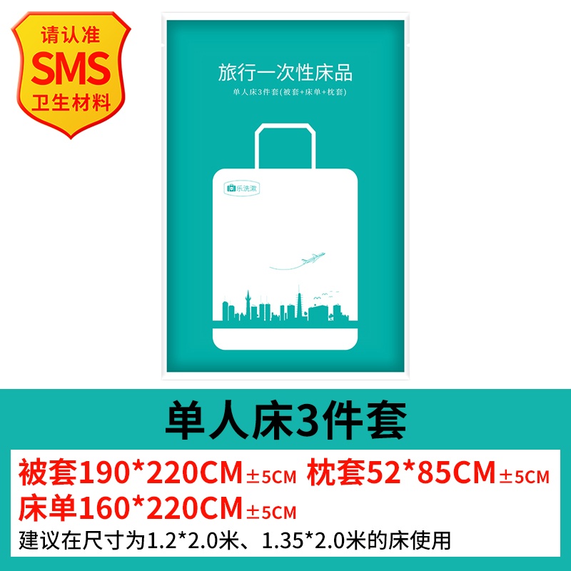 Travel disposable sheets, quilt covers, pillowcases, dirty thickened isolation sleeping bags, Hotel single bed three-piece set