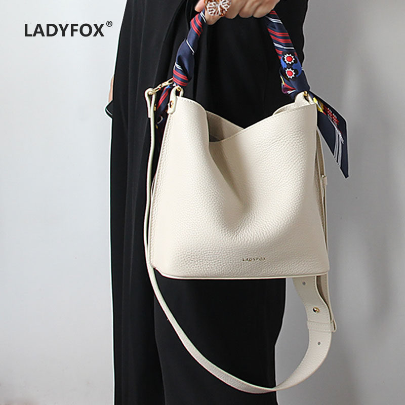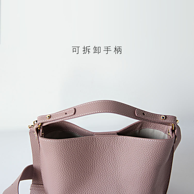 Genuine leather bucket bag women's messenger bag soft leather simple atmosphere handbag temperament shoulder bag ladies small bag mother bag